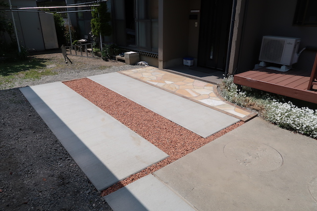 また、砂利敷きのままだと雨の日は歩きにくくなります。